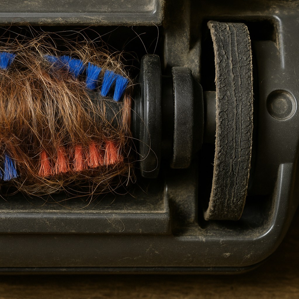 If a new bag or clean filter didn’t solve the issue, the next place to look is the brush roll (also known as the beater bar). This is the spinning brush at the bottom of the vacuum that agitates the carpet. The smell associated with this problem is usually a distinct burning rubber odor.