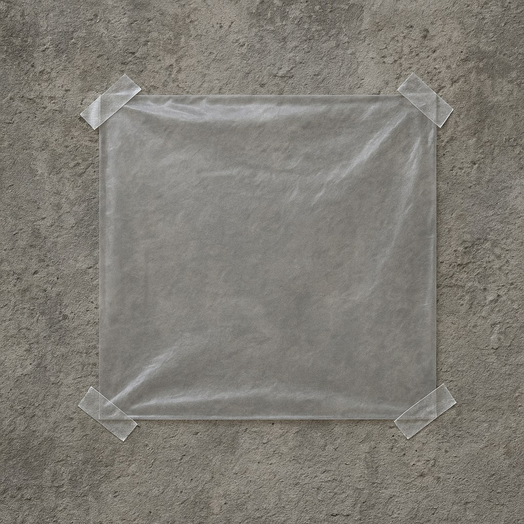 - After a day, peel it off and check the underside of the plastic and the surface of the wall. Is there any condensation, dampness, or fresh white powder (efflorescence)?