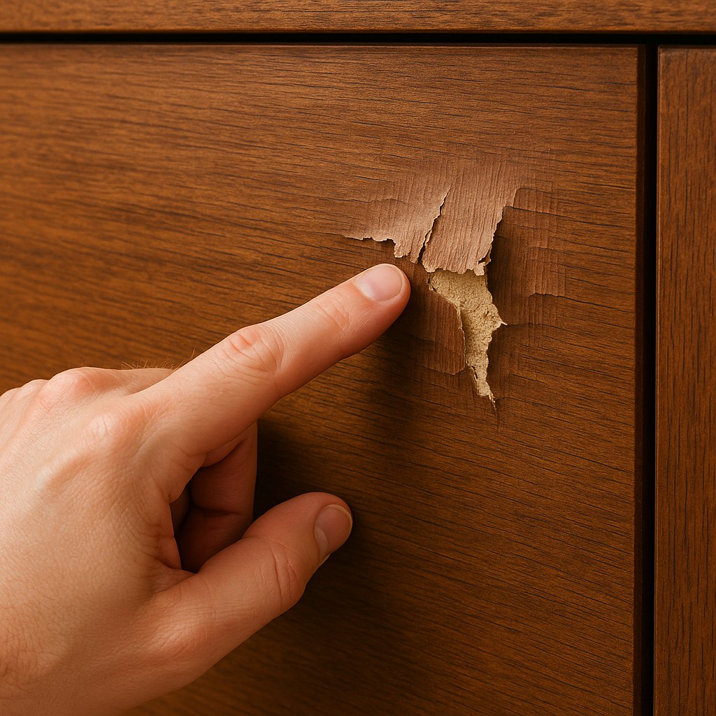 - The substrate is soft, swollen, or shows signs of water damage. This is the most important warning sign. Gluing new veneer over a damaged core will not work and indicates a larger moisture problem that needs to be addressed first. A carpenter or cabinetmaker can assess if the cabinet structure needs to be rebuilt.