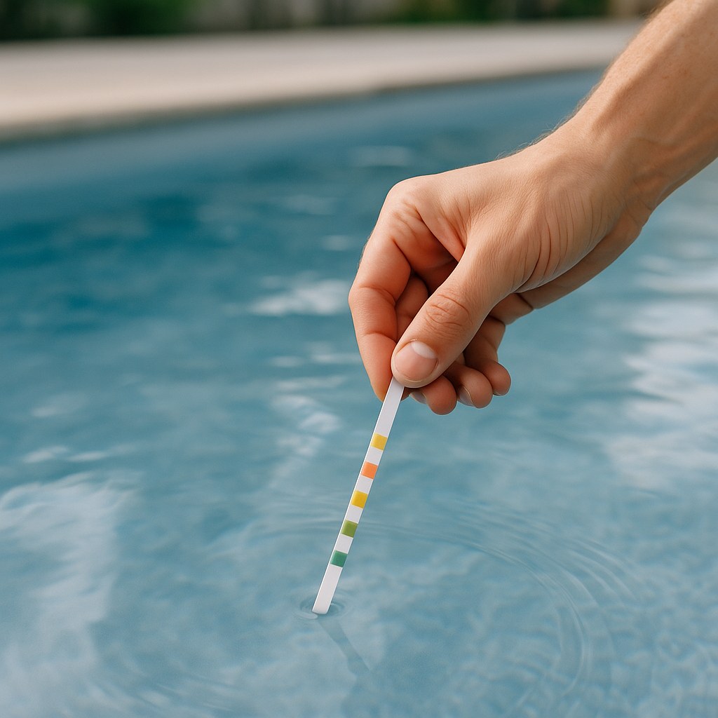 - Test Your Water: This is the most important step! Grab your pool or spa test strips. Dip one about 18 inches (or elbow-deep) into the water, away from any jets or skimmers. Read the results for pH, sanitizer (chlorine/bromine), and total alkalinity.