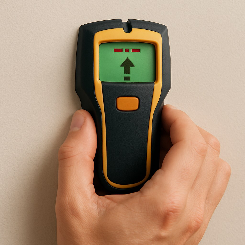 - Slowly slide it horizontally across the wall. It will beep or light up when it detects the edge of a stud. Mark this spot.