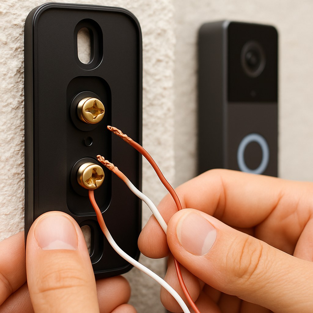- Connect to the New Bracket: Thread the two existing wires through the center hole of your new smart doorbell's mounting bracket.