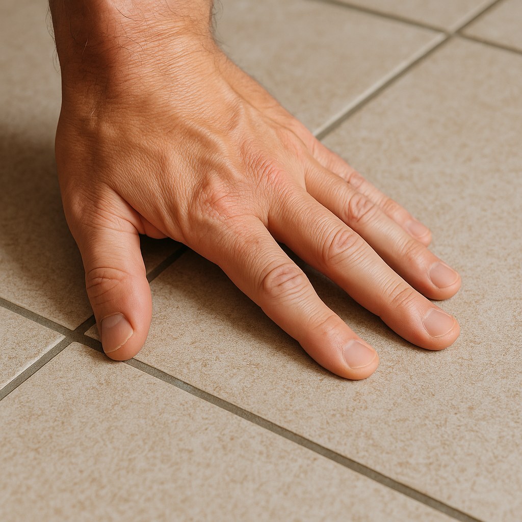- Check for Movement: Firmly press down on the corners and edges of every tile, especially those near the damaged grout. Make a note of any tile that feels loose or shifts under pressure.