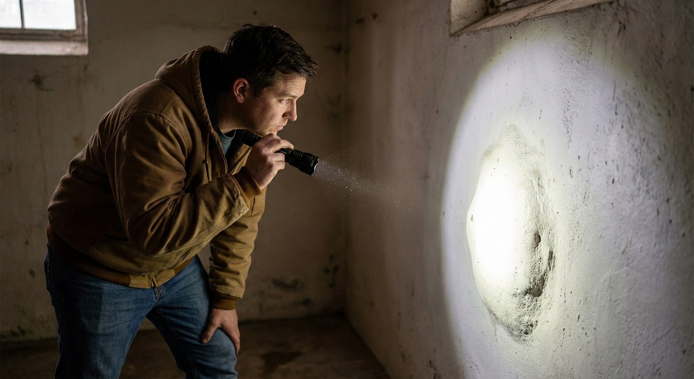 - Use a Flashlight: Shine a flashlight at a low angle across the wall's surface. This technique, called "raking light," makes it easier to see subtle discoloration, texture changes, and water stains you might miss otherwise.