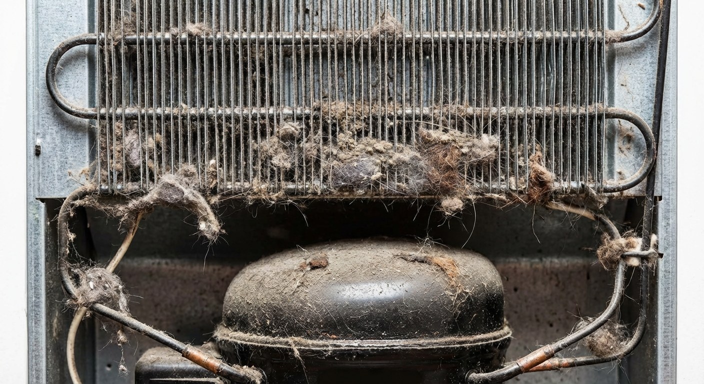 - Dirty Condenser Coils: These coils, usually on the back or bottom of the fridge, release heat. If they’re covered in dust or pet hair, they can’t do their job effectively.