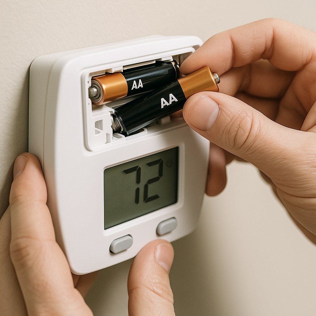 For digital, non-hardwired thermostats, low batteries can cause all sorts of strange behavior. The display might work, but the internal components may not have enough power to function correctly, leading to a signal that keeps your HVAC system stuck in the "on" position.